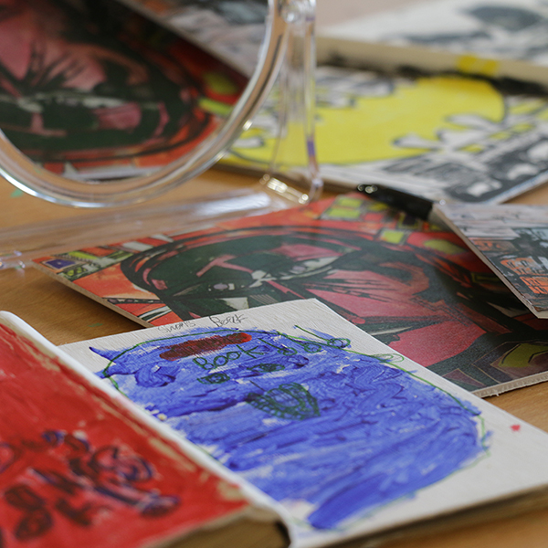 For our ‘After Adoption’ sessions aimed at families, Creative Director Emily Phillips had taken her inspiration from book covers Ribeiro had designed. An array of carefully-selected vintage books were provided to spark dialogue between parents – who would perhaps be enticed down memory lane - with children who were given the choice to pick out books that were a mark of their individuality. One boy had taken lines from a Shakespeare play, revealing his interest in the theatre. Several chose to do self-portraits. A family of five found they had hidden artistic talent.