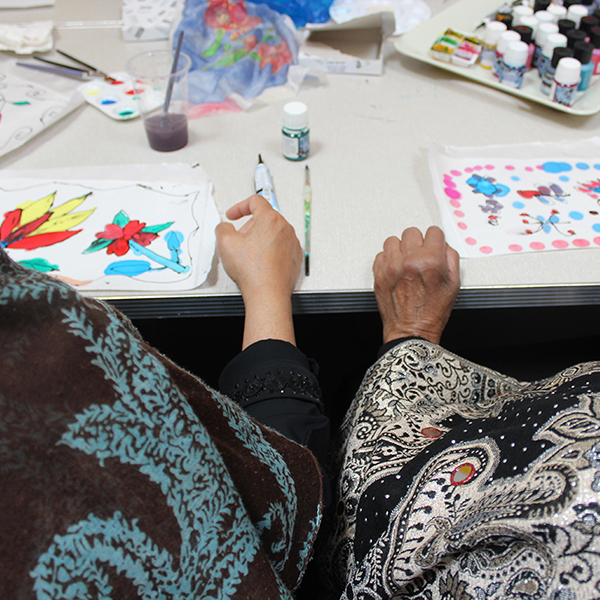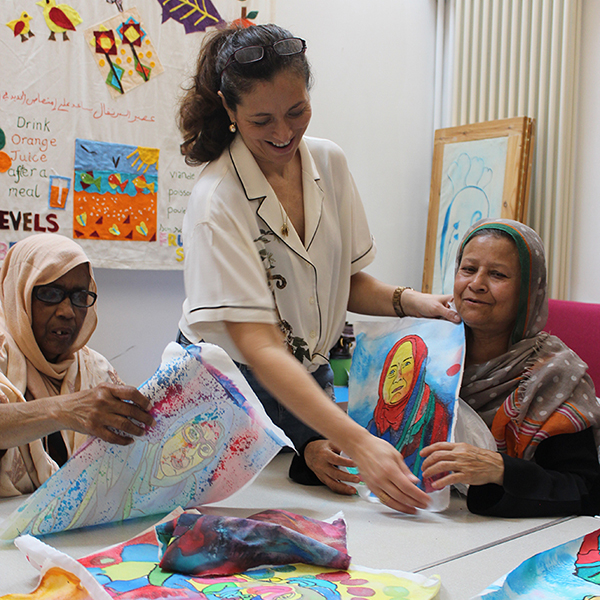 As part of the V&A Ribeiro Community Arts Project, our Bengali Grandmothers from the ‘Grandmas That Brunch Club’ who - like Ribeiro - had left the subcontinent in search of a new life in Britain, were tasked with painting their self-portraits on silk. For many, this was one of the rare outings away from home and a chance to express their voice collectively and share their experiences with us.