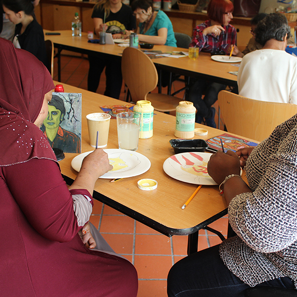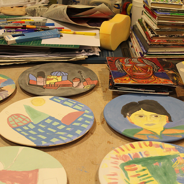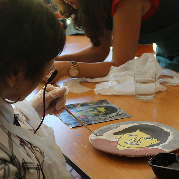 The Social Care group were tasked by artist Mürüde Mehmet to paint portraits or townscapes on ceramic plates, referring to their choice of Ribeiro’s artwork that aligned with their own sense of identity. Several opted for the only realistic oil portrait he ever did in 1963 – that of his wife.
