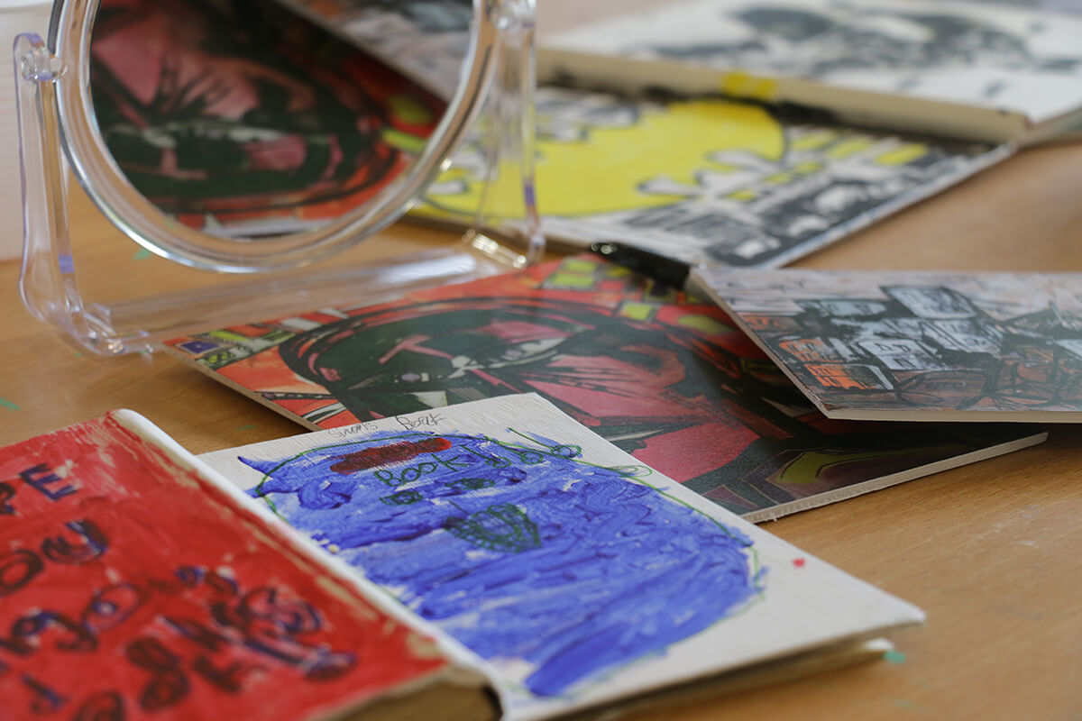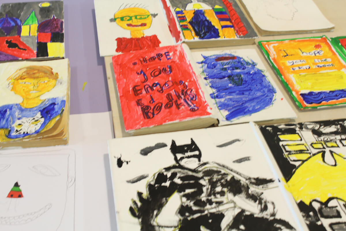 For our ‘After Adoption’ sessions aimed at families, Creative Director Emily Phillips had taken her inspiration from book covers Ribeiro had designed. An array of carefully-selected vintage books were provided to spark dialogue between parents – who would perhaps be enticed down memory lane - with children who were given the choice to pick out books that were a mark of their individuality. One boy had taken lines from a Shakespeare play, revealing his interest in the theatre. Several chose to do self-portraits. A family of five found they had hidden artistic talent.
