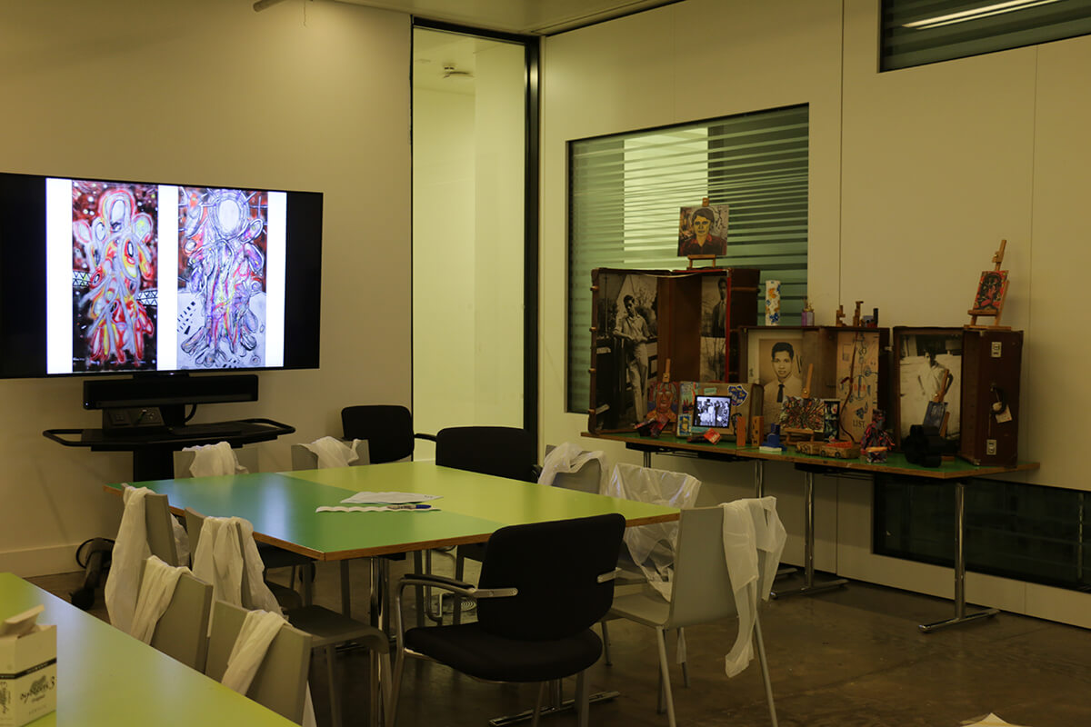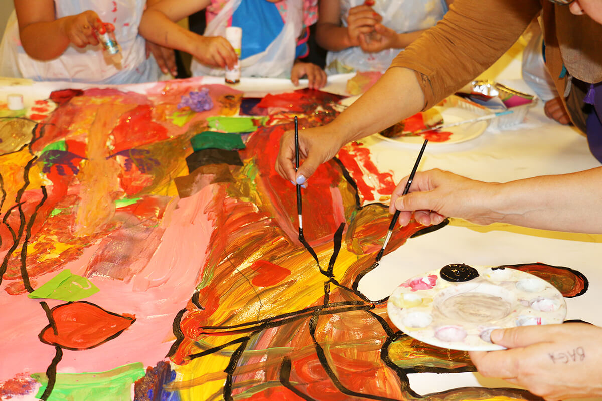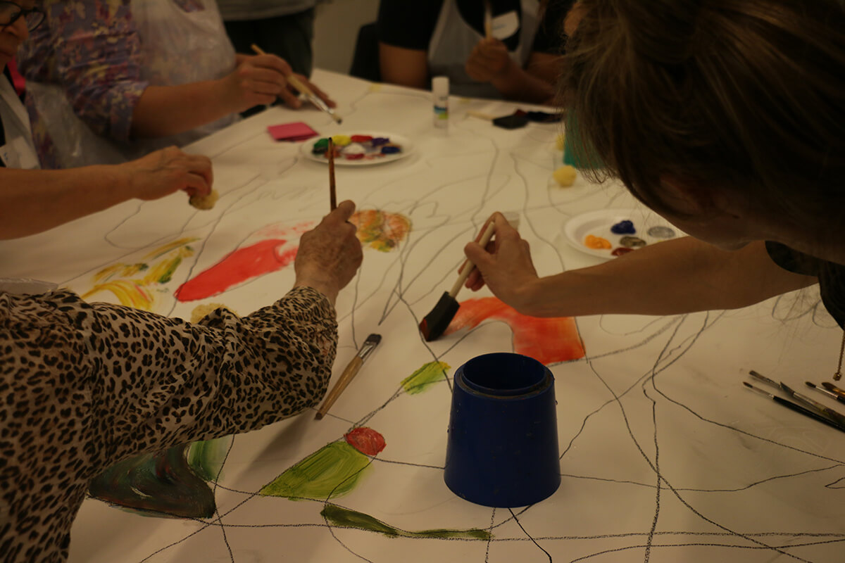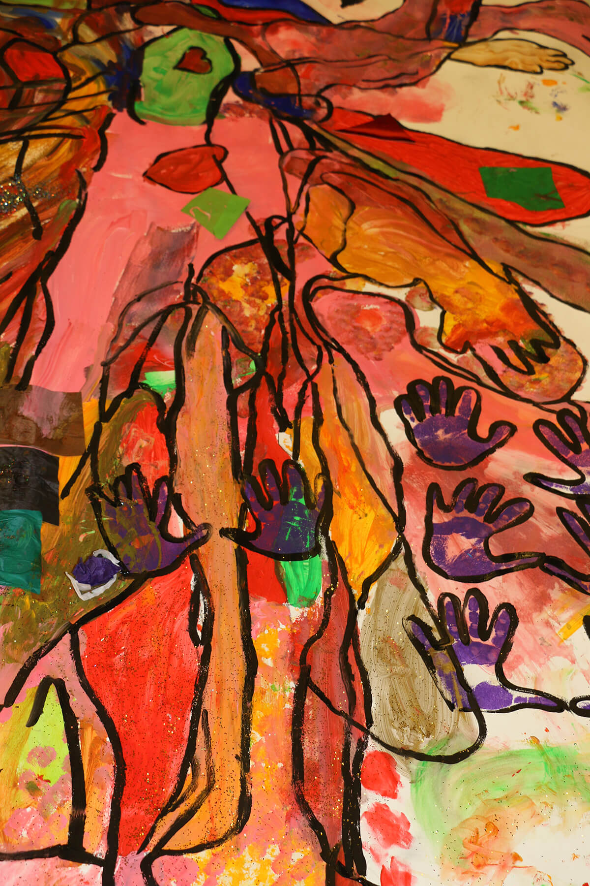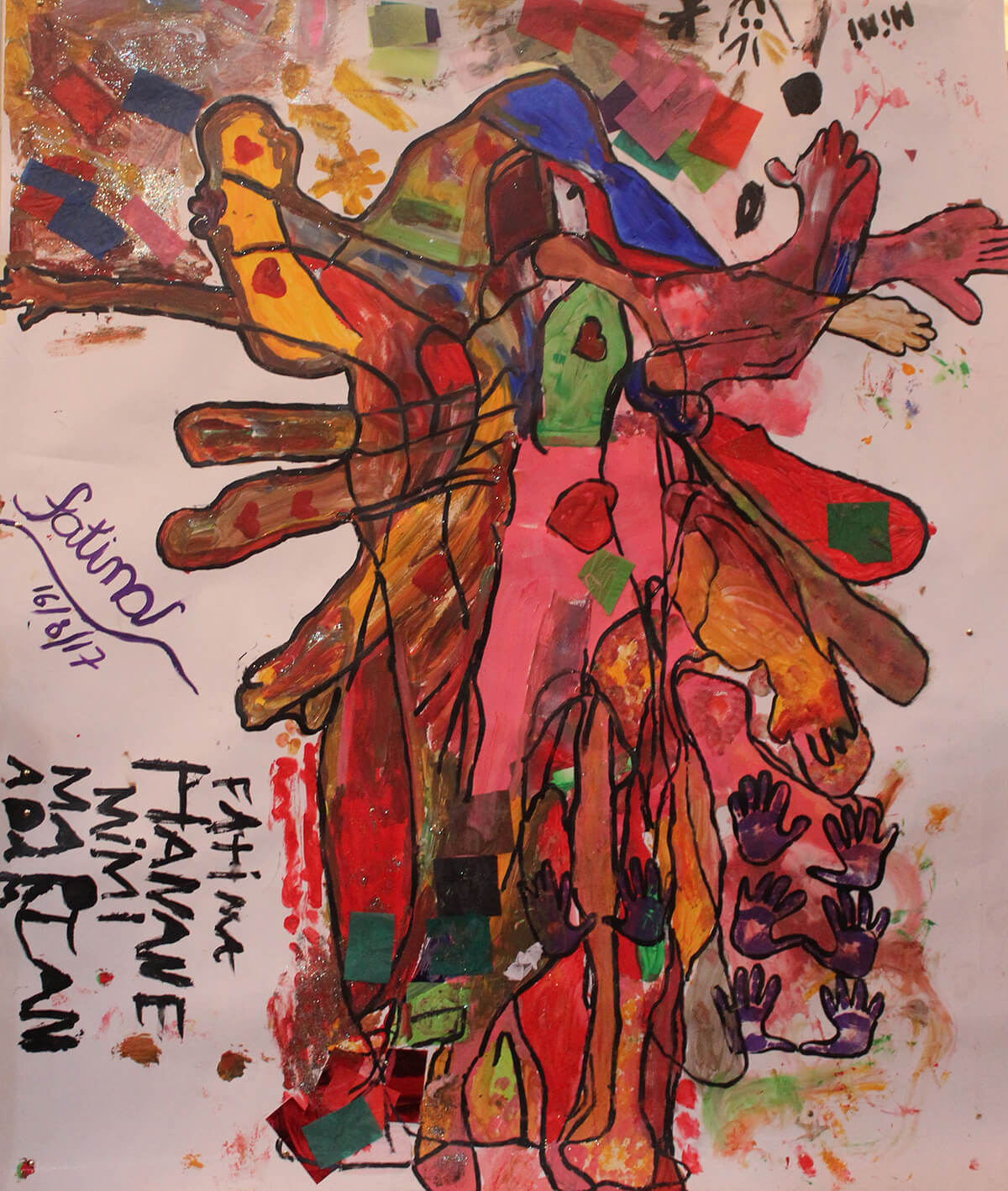 For our workshop with NOVA’s Grenfell families group, Emily Phillips had selected Ribeiro’s mystical paintings entitled ‘Divinities’ as an activity the families could do as one. Producing these larger-than-life paintings, the atmosphere in the room was Carnivalesque and they “enjoyed doing something together and having fun”.
