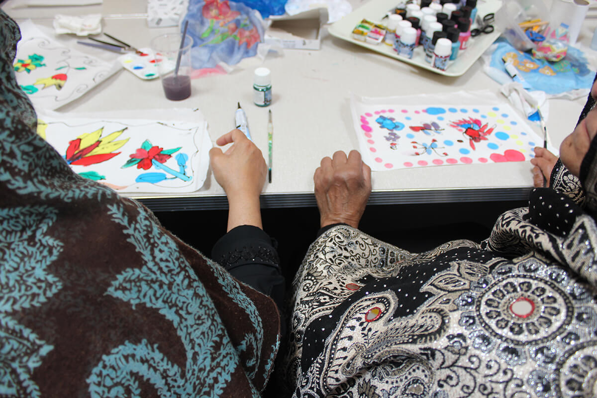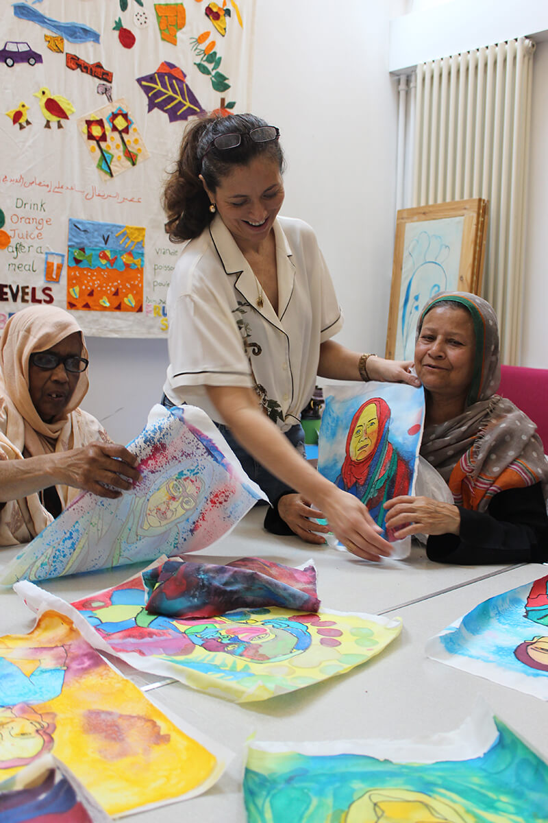 As part of the V&A Ribeiro Community Arts Project, our Bengali Grandmothers from the ‘Grandmas That Brunch Club’ who - like Ribeiro - had left the subcontinent in search of a new life in Britain, were tasked with painting their self-portraits on silk. For many, this was one of the rare outings away from home and a chance to express their voice collectively and share their experiences with us.